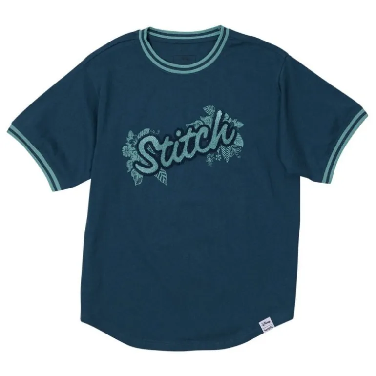 La camiseta unisex Stitch Sporty de Disney by Loungefly es una prenda imprescindible para todo fan de Disney. Confeccionada en un 100% algodón Jersey, ofrece una comodidad superior y un ajuste perfecto. Su diseño presenta un vibrante color azul marino con el nombre ‘Stitch’ en el frente rodeado de detalles florales, que resalta la personalidad traviesa de este querido personaje. Los ribetes en contraste en las mangas y el cuello añaden un toque deportivo y moderno.