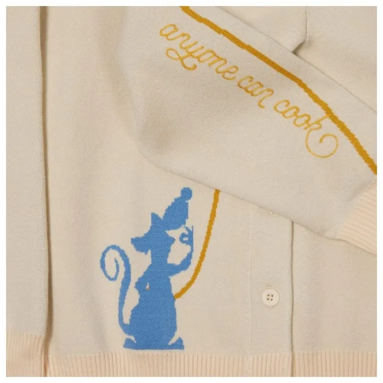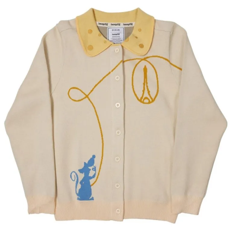 Descubre el elegante cardigan unisex de Ratatouille de Pixar por Loungefly, una prenda imprescindible para los amantes de este clásico animado. Confeccionado con tejido de rizo francés de alta calidad, este cardigan ofrece una comodidad incomparable gracias a su capucha forrada de punto. Presenta un diseño encantador en tonos beige con un cuello amarillo que añade un toque de distinción.