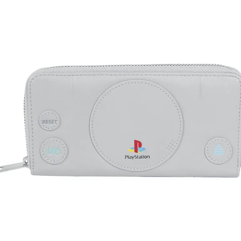 Una cartera larga que es una auténtica maravilla, inspirada en una consola tan mítica como la PlayStation, ya que tiene la forma de la auténtica y genuina Play Station One de Sony con su color gris tan de moda entonces hasta para las televisiones.