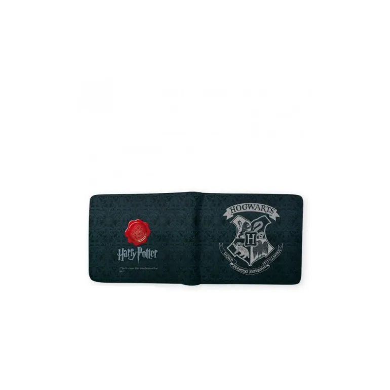 Una cartera genial la mires por donde la mires!! Por un lado tiene el emblema de Hogwarts grande y en color zinc y por el otro el sello en rojo. Y por dentro es también genial! En negro y con un acabado realmente fantástico tendrás un montón de compartimentos para que lleves tus cosas bien ordenadas, incluido uno con botón para las monedas!