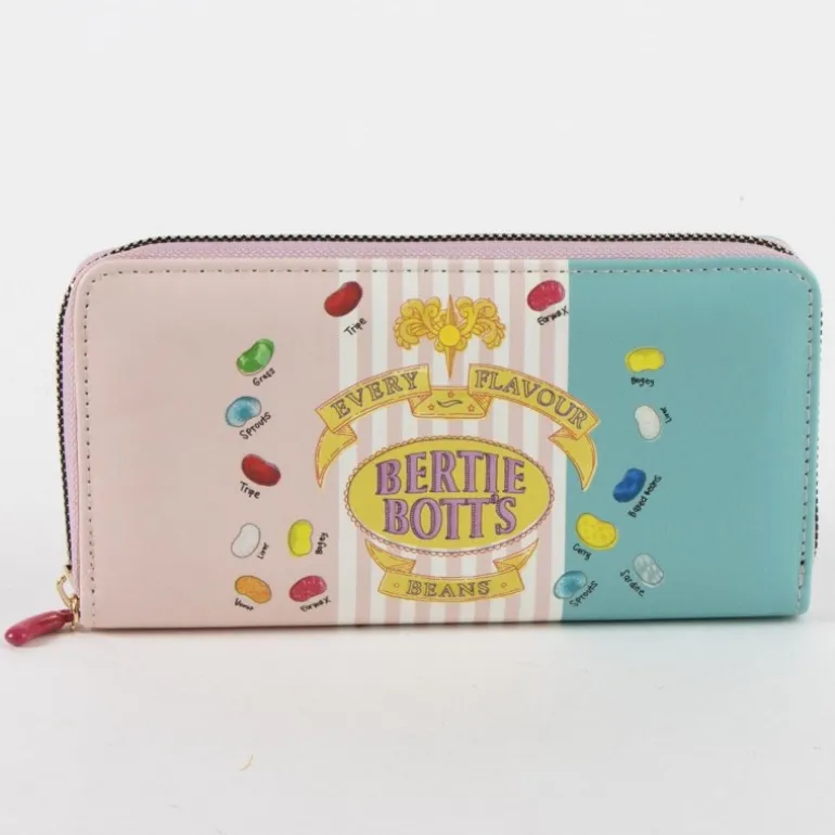 Descubre la cartera de polipiel Harry Potter Honeydukes, un complemento imprescindible para los fans del mundo mágico. Confeccionada en 100% poliuretano (PU), esta cartera ofrece durabilidad y un diseño encantador inspirado en las famosas grageas Bertie Bott de todos los sabores. Su color rosa se combina con detalles en azul, y muestra ilustraciones de las diferentes grageas en la parte frontal.