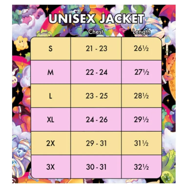La chaqueta está diseñada para ser el centro de todas las miradas gracias a su estampado meticulosamente detallado que fusiona elementos clásicos de los Ositos Amorosos con icónicos monstruos, creando así una pieza moderna y nostálgica al mismo tiempo. Fabricada por Loungefly, conocido por su atención al detalle y calidad, esta chaqueta no solo es vistosa sino también duradera.