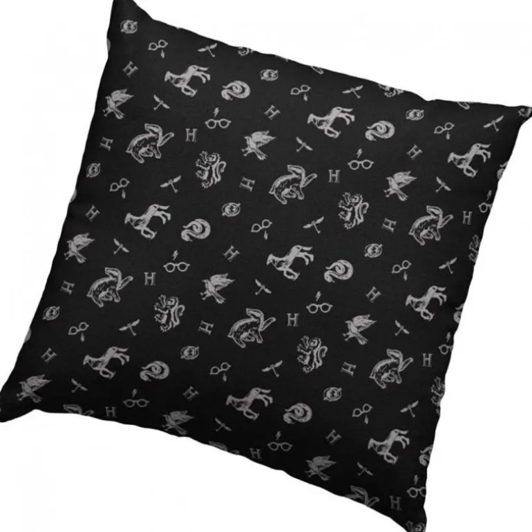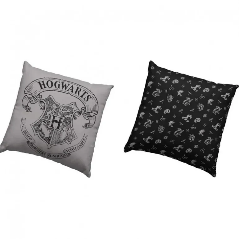 Este elegante cojin cuadrado de SD Toys es perfecto para los fanáticos de Harry Potter. El cojín muestra por un lado el icónico escudo de Hogwarts en un fondo gris y por el otro un patrón negro con detalles alusivos al mundo mágico. Fabricado con materiales de alta calidad, este producto con licencia oficial es ideal para decorar cualquier espacio o para regalar a un amante de la saga. Tanto práctico como decorativo, añade un toque mágico a tu hogar.