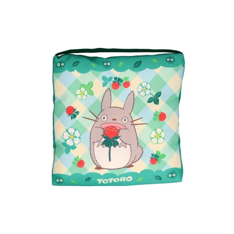 El cojín es un producto oficial de Studio Ghibli, con una excelente calidad tanto en materiales como en acabados. Tiene una medida aproximada de 30 x 30 cm y está confeccionado en poliéster resistente de gran calidad. Pero lo mejor de todo es su fantástico diseño, con el dibujo de nuestro querido Totoro, en un dibujo colorido y adorable en el que le vemos comiendo una fresa.