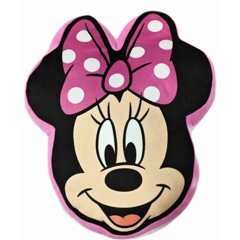 Descubre el encanto del cojín de Minnie Mouse, un producto oficial de Disney que cautivará a pequeños y grandes. Este cojín tiene una forma personalizada que recrea el alegre rostro de Minnie Mouse, con su distintivo lazo rosa con lunares blancos. El diseño incluye los característicos colores negro, rosa y beige que hacen de este cojín una pieza única y especial.