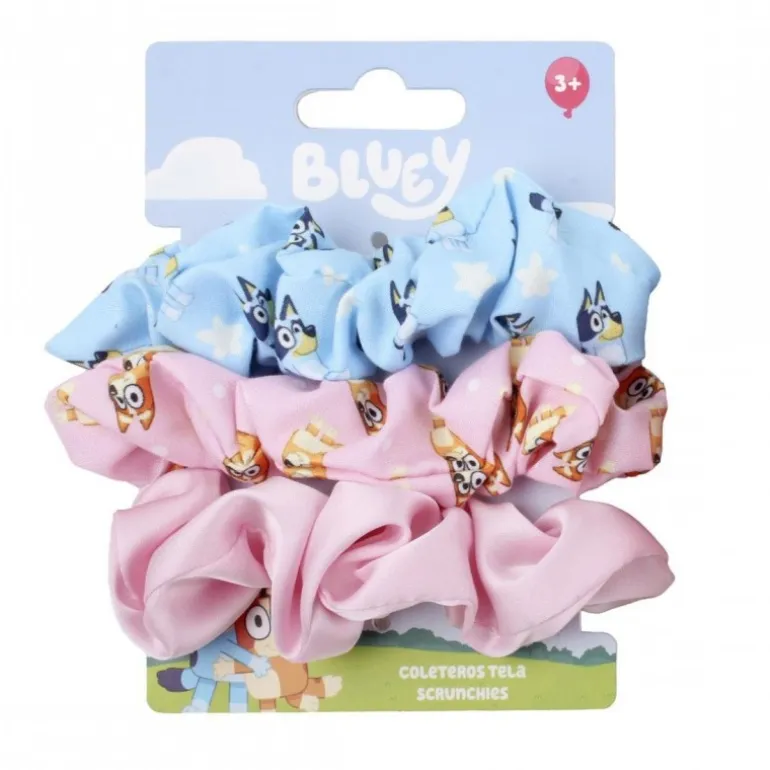 Descubre el encanto de estos coleteros de tela Bluey diseñados especialmente para los más pequeños. Este set incluye tres coleteros vibrantes: uno en azul cielo con imágenes de Bluey y estrellas blancas, otro en rosa pastel con el mismo adorable personaje y un tercero en un elegante tono rosa liso. Cada coletero está fabricado con 100% poliéster, garantizando suavidad y resistencia para el uso diario. Estos accesorios para el cabello no solo mantendrán los mechones de tu pequeño en su lugar, sino que también añadirán un toque de diversión y color a su estilo diario. Ideales para niños a partir de 3 años, son perfectos para cualquier ocasión, desde el colegio hasta una salida al parque.