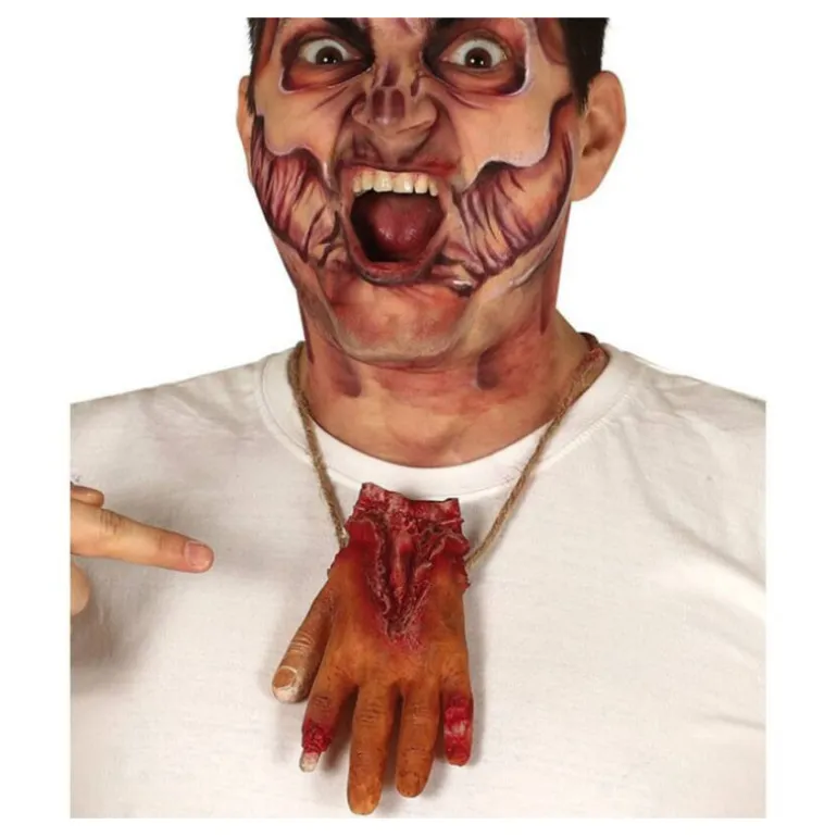 Collar con Mano Sangrienta. Ideal para fiestas de terror como puede ser halloween. ¡Compra con total seguridad y confianza en , un comercio online que cumple con todas las normativas de la U.E.!