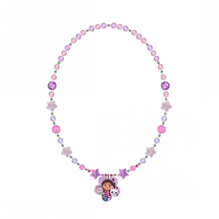 Descubre el collar de bisutería inspirado en la mágica serie de Gabby’s Dollhouse. Este encantador accesorio está compuesto por cuentas multicolores en tonos rosas y lilas, combinadas con pequeños adornos en forma de estrellas y flores que capturan la esencia de la serie. Al centro, un peculiar colgante con la ilustración de Gabby y sus inseparables amigos felinos, que hará las delicias de los más pequeños. Fabricado con materiales de calidad, es ligero y cómodo de llevar, perfecto para añadir un toque de fantasía a cualquier atuendo infantil. Ideal como regalo para los seguidores de Gabby’s Dollhouse, este collar no solo es un accesorio, sino una puerta a la imaginación y el juego.