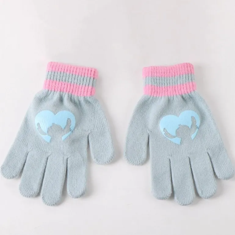 El gorro presenta un pom pom en la parte superior y un aplique de Stitch con el saludo «Aloha». La bufanda es ligera y cálida, adornada con líneas azules y un corazón estampado con la silueta de Stitch. Los guantes, también en azul claro, cuentan con un diseño que complementa perfectamente el conjunto, asegurando que tus manos se mantengan cálidas en todo momento.