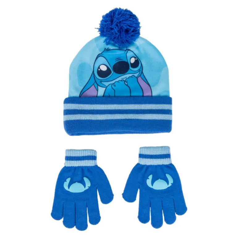 Los guantes a juego, también en tonos azules, cuentan con un diseño sencillo pero encantador, llevando el icónico símbolo de Stitch en la palma. Están hechos de una mezcla de 50% acrílico y 50% poliéster, lo que garantiza suavidad y calidez, ideales para actividades al aire libre en invierno. Con una talla única, este conjunto es perfecto tanto para niños como para adultos que desean añadir un poco de magia a su vestimenta.
