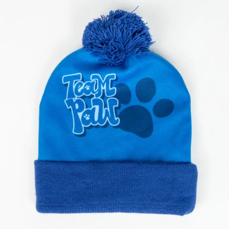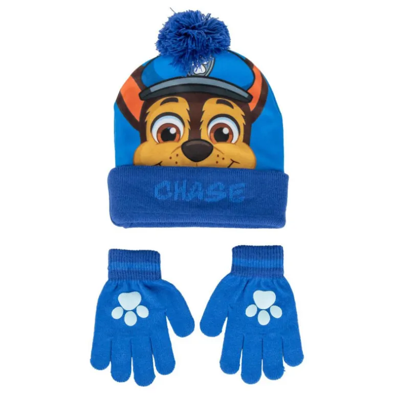 Los guantes, también en un alegre color azul, cuentan con un diseño práctico y divertido, adornados con huellas de patas en blanco, que complementan perfectamente el gorro. Estos guantes son ideales para mantener las manos de los niños calientes mientras juegan al aire libre, explorando su entorno con sus personajes favoritos a su lado.