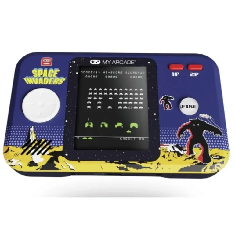 La Consola Pocket Player Space Invaders de MY ARCADE ofrece una experiencia de juego portable y nostálgica con su clásico diseño de 8,4 cm. Con licencia oficial, esta consola presenta colores vivos en azul y amarillo, decorada con ilustraciones icónicas de Space Invaders.
