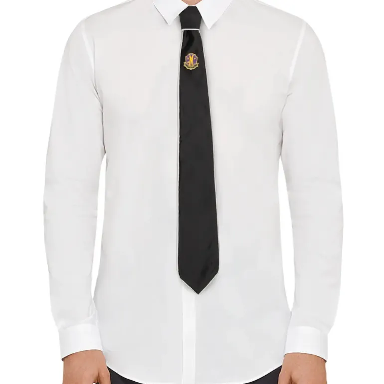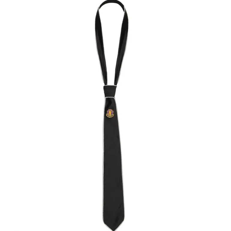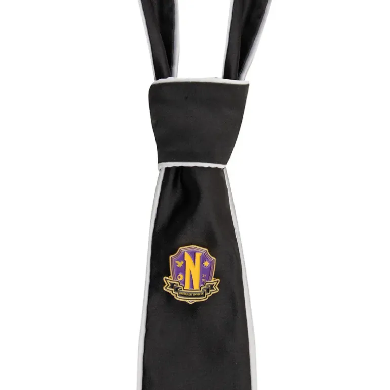 La corbata deluxe Nevermore Academy con pin Miércoles es una replica fiel y detallada de la icónica corbata usada por el personaje de Miércoles Addams en la famosa película «The Addams Family». Esta corbata de alta calidad está fabricada con materiales premium que garantizan su durabilidad y resistencia.