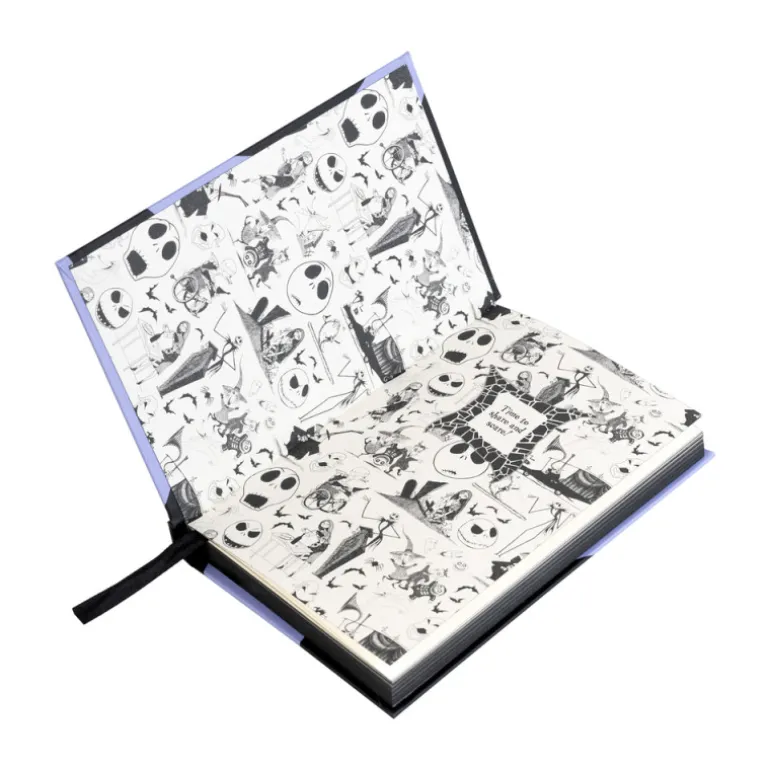 ¡¡Mira que pasada de libreta!! Es de tamaño A6 para que te quepa en cualquier sitio y su diseño está basado en unos de las películas más icónicas de la filmografía de Tim Burton: Pesadilla Antes de Navidad.