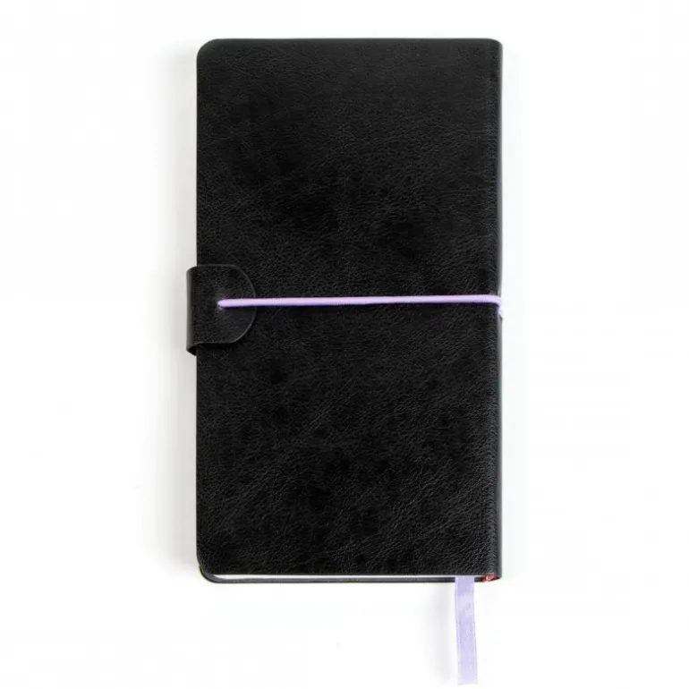 Para asegurar tus escritos, el cuaderno cuenta con un cierre elástico de color morado pálido, coordinado con el diseño interior. Además, incluye un marcador de página del mismo color para que nunca pierdas tu lugar.