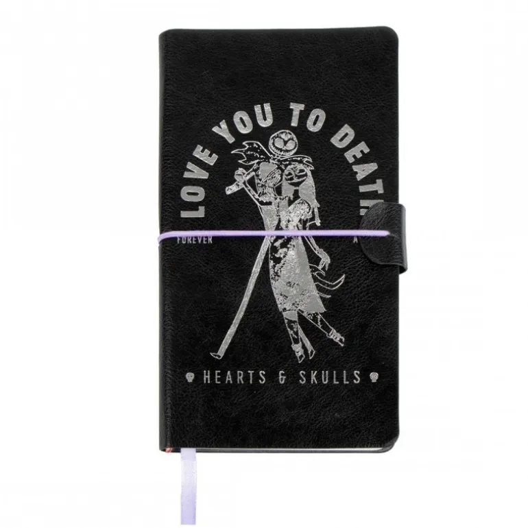 Descubre el cuaderno premium inspirado en Nightmare Before Christmas, perfecto para los amantes de la película que buscan una pieza de colección única y funcional. Este cuaderno presenta una cubierta en color negro, hecha al 100% de PU, con un diseño llamativo que incluye la frase «Love You to Death» junto a personajes icónicos de la película.