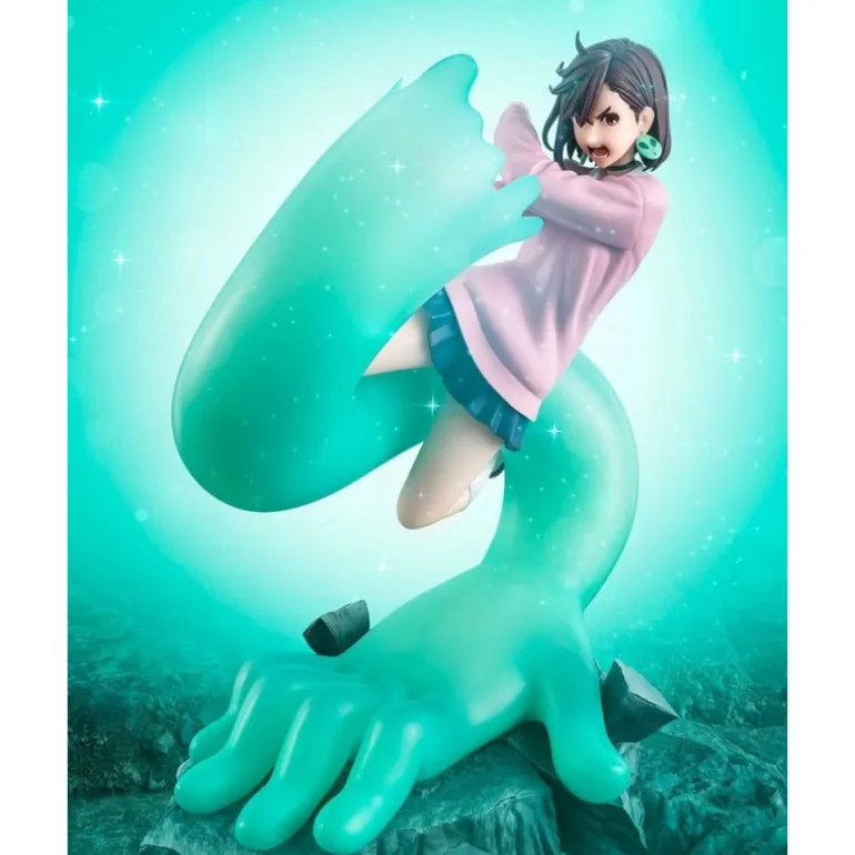 Sumérgete en el universo de Dandadan con esta impresionante estatuilla de Momo, creada por Bandai Tamashii Nations. Esta figura de 17 cm de altura captura a Momo en una dinámica pose, abrazada por una mano gigante de color azul verdoso que añade un toque especial a su diseño. El personaje viste una sudadera rosa sobre una falda azul marino, mostrando su expresión decidida y detalles meticulosamente reproducidos.