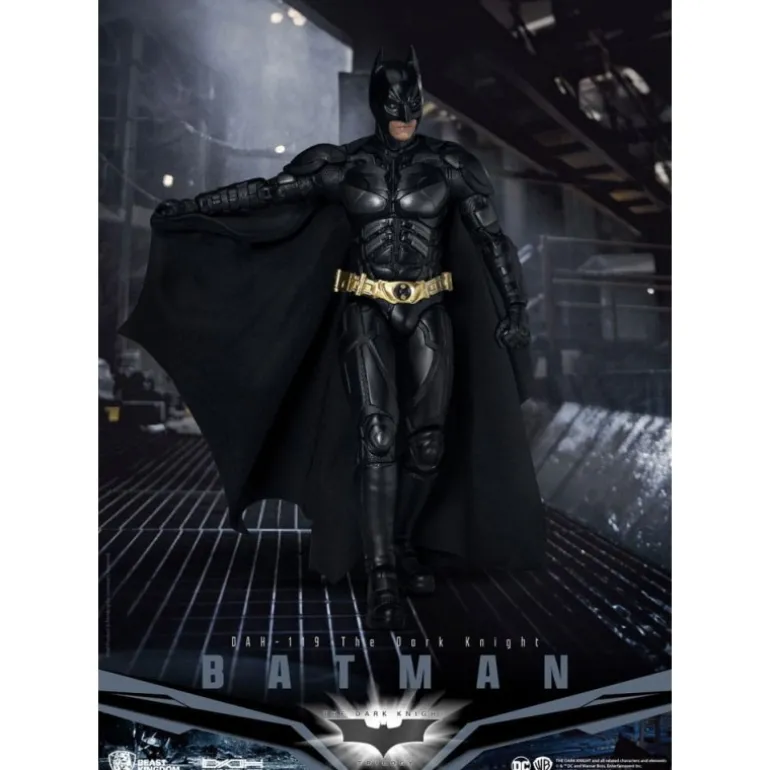 La figura articulada de Batman de Beast Kingdom Toys es una pieza excepcional para los amantes del Caballero de la Noche. Este impresionante modelo a escala 1/9 mide aproximadamente 21 cm y captura a la perfección la esencia de Batman de The Dark Knight. Su traje negro está detalladamente diseñado, destacando la estructura muscular y las texturas del icónico traje del héroe de Gotham. Incluye una capa de tela negra, realzando su majestuosidad y permitiéndote crear poses dramáticas.