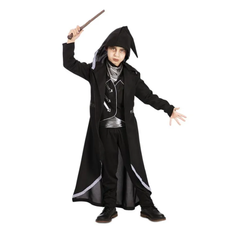 Este disfraz de hechicero negro transformará a tu pequeño en el protagonista de su propia aventura mágica. Diseñado con detalles cautivadores, incluye una chaqueta con capucha y un chaleco simulado que evocan el misterioso mundo de la hechicería. El conjunto se completa con un pañuelo y un cinturón, aportando un toque auténtico al atuendo.