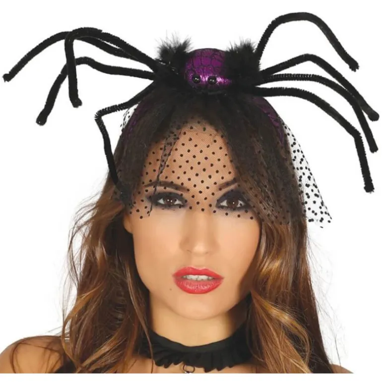 Diadema con Araña Lila y Velo