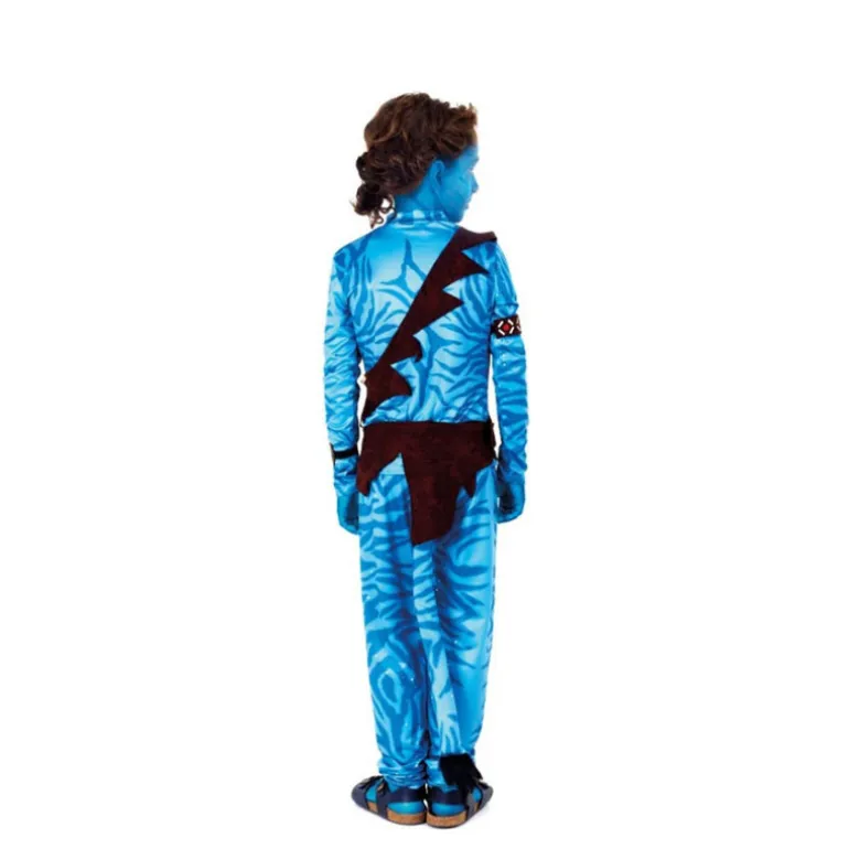 Transforma a tu pequeño en un personaje de otro mundo con este disfraz de Avatar para niño. El conjunto incluye una llamativa camiseta azul con detalles en marrón oscuro que simulan correa y adornos tribales. Los pantalones a juego mantienen el mismo esquema de color, imitando las franjas características de una piel alienígena.