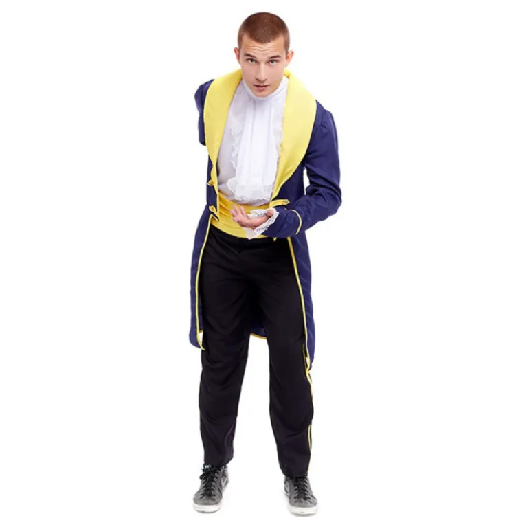 Disfraz de Príncipe Encantado Real para hombre. Incluye Chaqueta, Camiseta sin mangas, Gorguera, Fajín y Pantalones en una prenda. No Incluye Calzado
