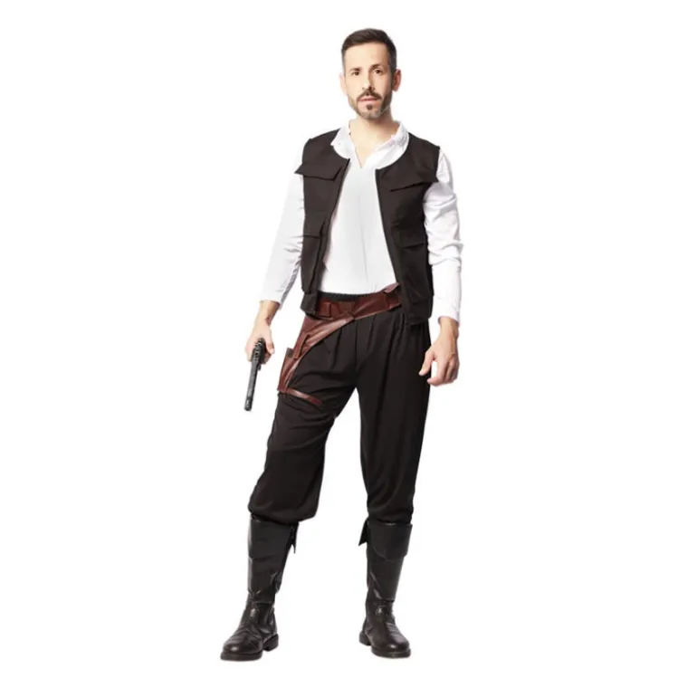Transforma cualquier evento de disfraces en una aventura épica con este disfraz de Han Solo para hombre. El conjunto incluye una camisa blanca de estilo clásico, perfecta para representar el icónico look del legendario héroe galáctico. El chaleco oscuro, diseñado con líneas simples y elegantes, complementa el estilo rebelde y audaz que caracteriza al personaje. Además, la cartuchera color marrón añade un detalle funcional y estético, ideal para llevar tu creatividad al siguiente nivel.