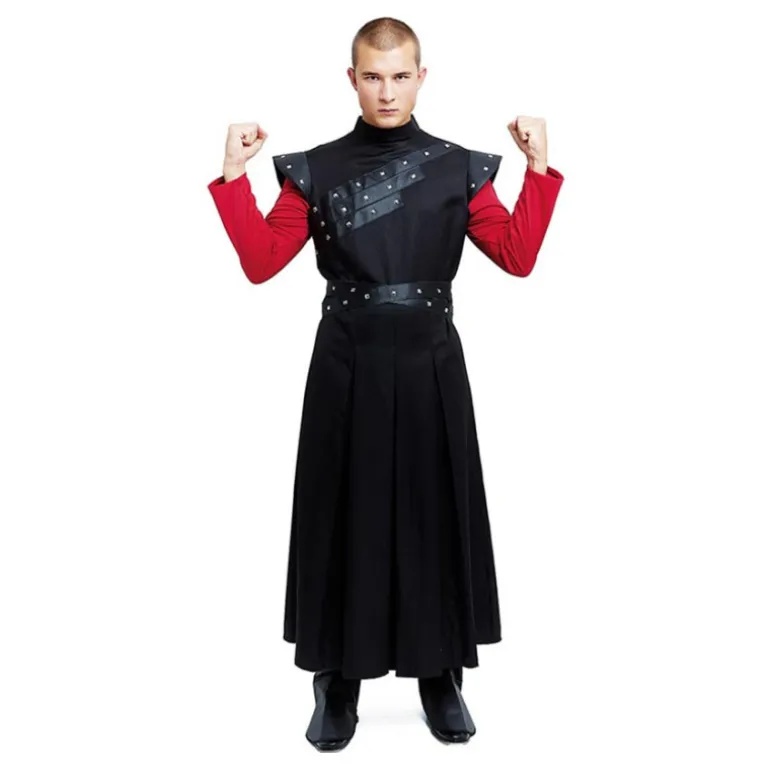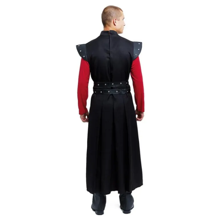Sumérgete en el mundo de fantasía con este impresionante disfraz de Juego de Tronos para hombre. El conjunto incluye una túnica negra de corte largo que se asemeja al atuendo de un noble guerrero. La túnica está decorada con detalles de remaches en los hombros, acentuando un estilo medieval auténtico. Complementando el look, se incluye un cinturón negro que añade estructura y carácter al conjunto.