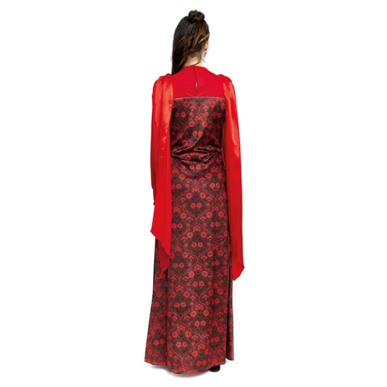 La capa roja fluida y las mangas largas con detalles de abertura brindan un aspecto real digno de la realeza de Westeros. Este disfraz es una opción ideal para fiestas temáticas, eventos de disfraces o simplemente para rendir homenaje a tu saga favorita.