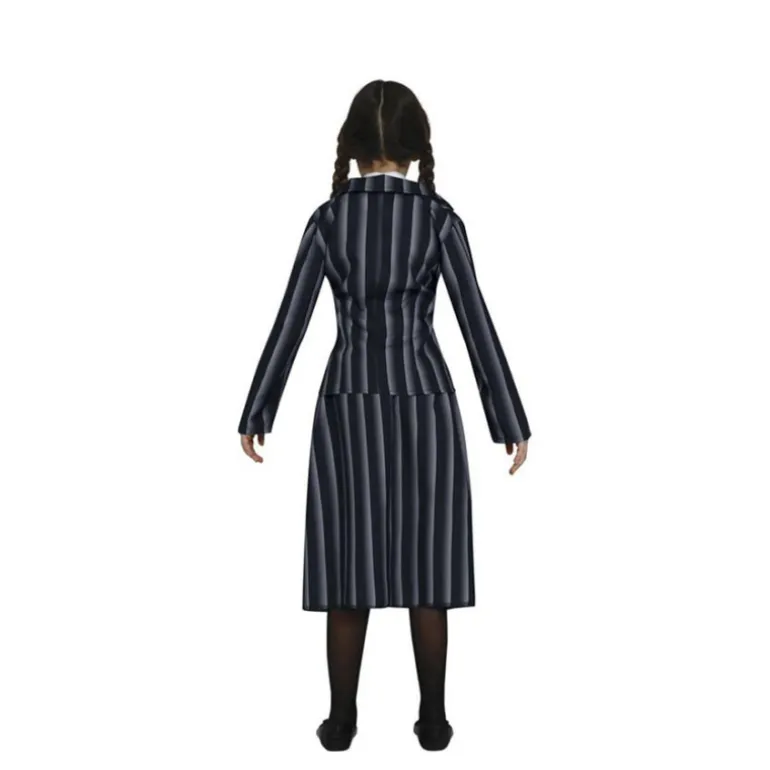 Transforma cada día en una ocasión especial con este impresionante disfraz de niña siniestra colegial. El conjunto incluye una elegante chaqueta con un diseño a rayas en tonos oscuros, ideal para captar la esencia misteriosa del personaje. La camisa blanca con corbata anudada añade un toque sofisticado y encantador, mientras que la falda a juego completa este fascinante atuendo escolar.