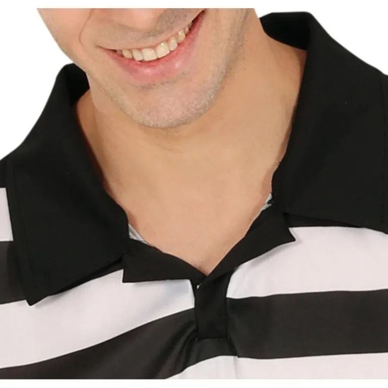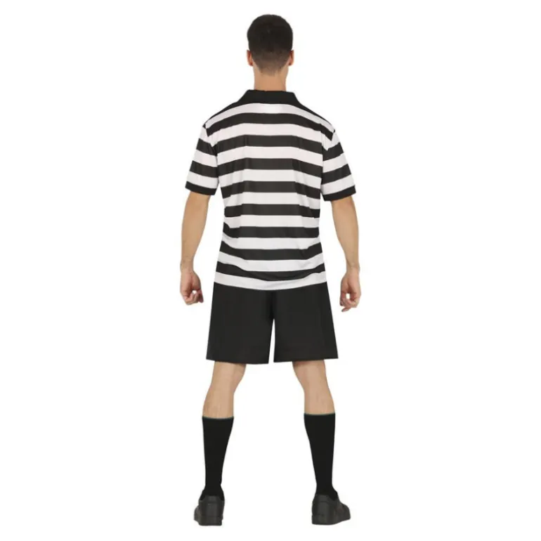 Transfórmate en un personaje enigmático con este disfraz de Niño Tenebroso diseñado exclusivamente para hombres. El conjunto incluye una camiseta y un pantalón. La camiseta presenta un diseño clásico de rayas horizontales en blanco y negro, complementado por un cuello negro que añade un toque de elegancia al atuendo. El pantalón es de color negro sólido, ofreciendo un ajuste relajado para mayor comodidad.