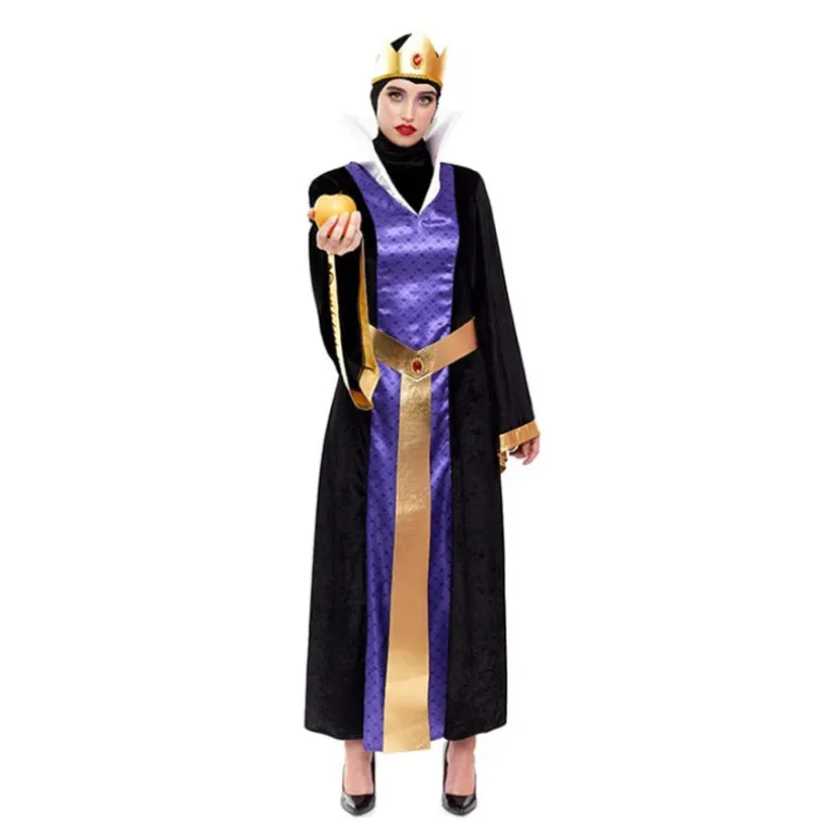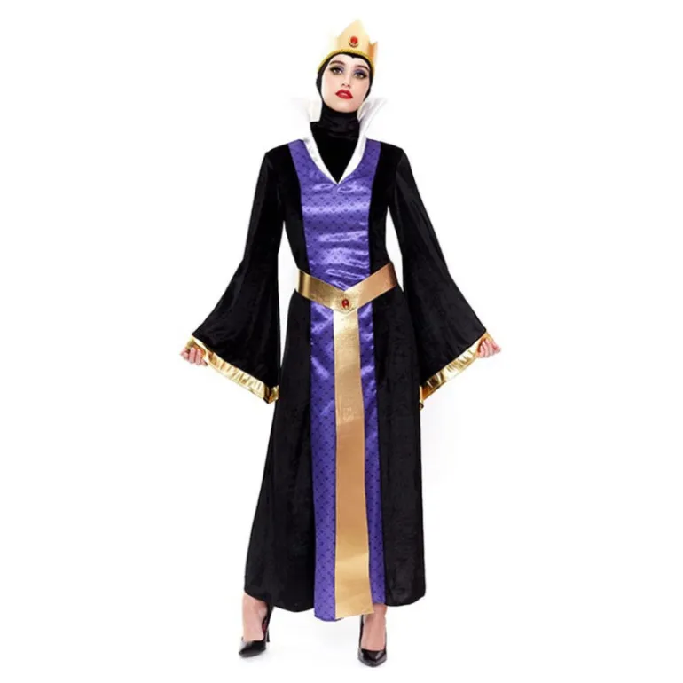 Disfraz de Reina Malvada Clásica para mujer. Incluye Vestido con Cuello, Gorro, Cinturón y Corona con velcro. No incluye Calzado.
