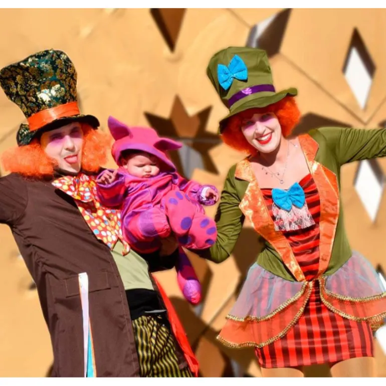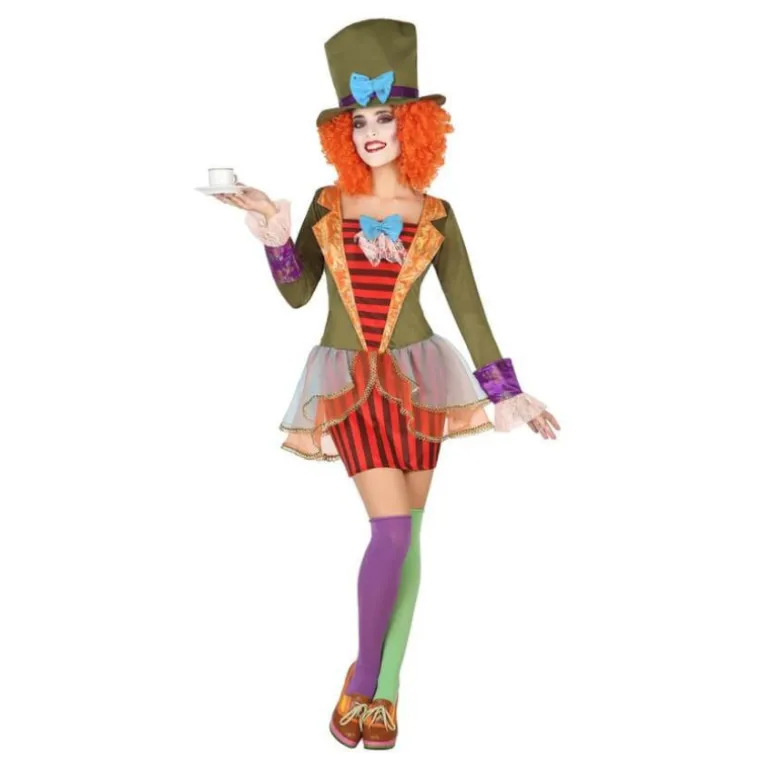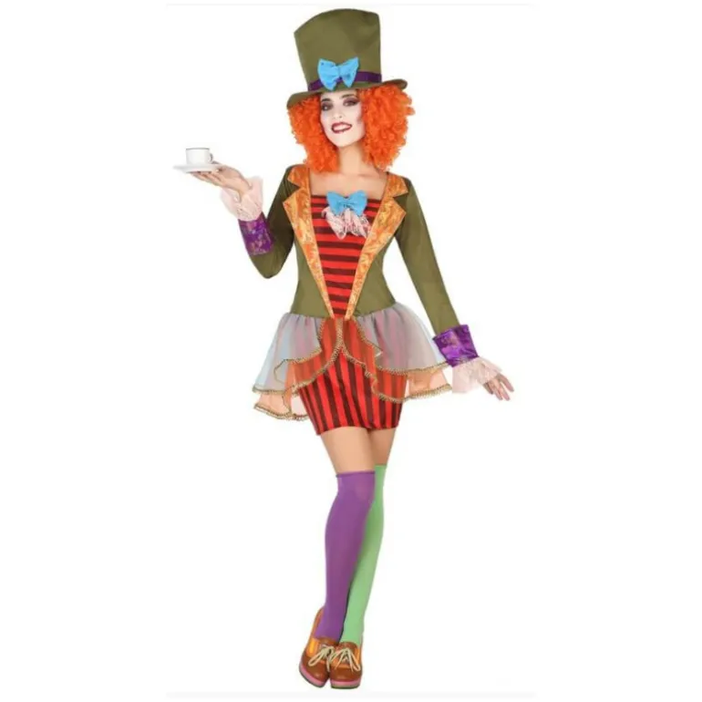 Disfraz de Sombrerera Loca a Rayas para mujer. Inspirado en los personajes de Alicia en el País de las Maravillas.