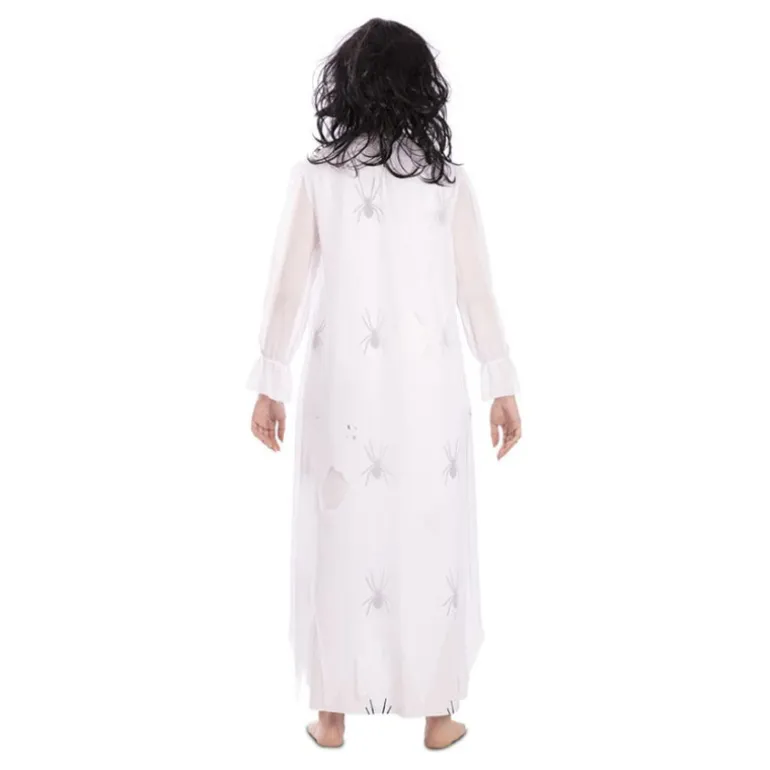 Conviértete en el alma de cualquier fiesta de Halloween con este disfraz de Sonámbula Zombie para mujer. El atuendo incluye un cómodo camisón blanco que llega hasta los tobillos, decorado con detalles de arañas impresas y manchas para dar un toque terrorífico auténtico. Las mangas largas le añaden un aire vintage, y el lazo negro en el pecho contrasta perfectamente, dándole un toque de elegancia dentro del terror.