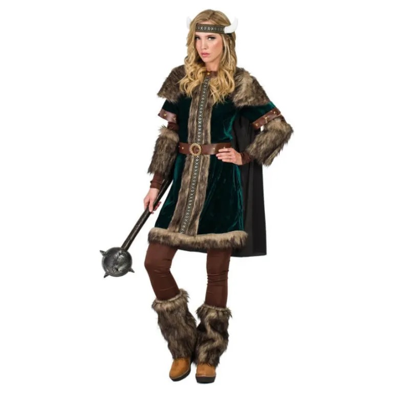 Este traje de vikingo para mujer es muy completo ya que lleva todo lo necesario para que no te falte detalle.