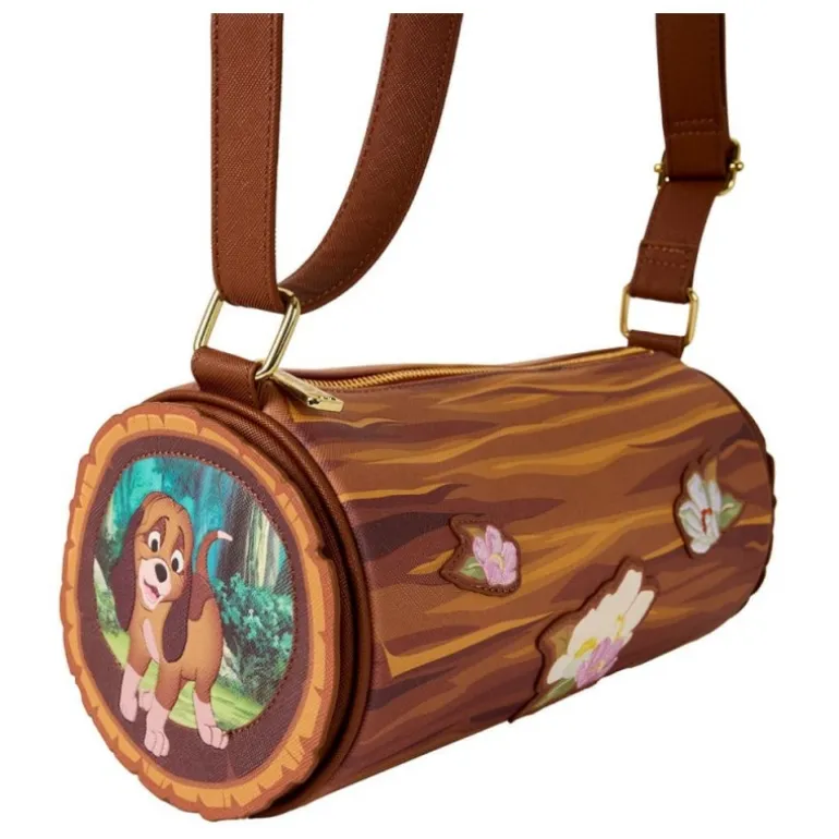 Descubre la exquisita bandolera Disney by Loungefly inspirada en The Fox and the Hound. Esta pieza única presenta un diseño temático que simula el aspecto de madera, agregando un toque de naturaleza a tu estilo. Los detalles florales bordados en tonos pastel realzan su elegancia, mientras que los extremos del bolso muestran a los adorables personajes de la película, dándole vida y color.