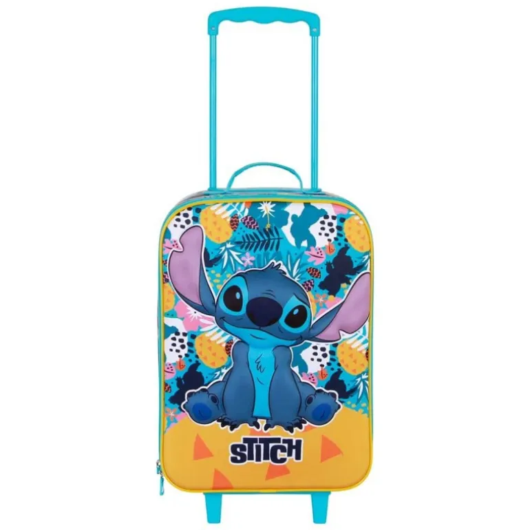 La maleta infantil blanda de Disney Lilo y Stitch es un producto encantador para los más jóvenes. En un vibrante color turquesa, esta maleta presenta a Stitch en un relieve frontal 3D que le da un toque único. Con un diseño de frutas tropicales en el fondo, es ideal para pequeños aventureros. Equipada con 2 ruedas para facilitar el movimiento y un asa regulable, es perfecta para manos pequeñas. Sus dimensiones de 52 x 33 x 17 cm la convierten en un excelente equipaje de mano, combinando funcionalidad y estilo. Un regalo original y útil para los fans de Disney.