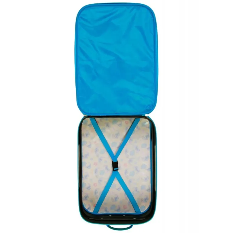 En su interior, forrado también en azul, cuenta con correas ajustables para mantener el contenido seguro durante el viaje. Perfecta no solo por su apariencia divertida, sino también por ser práctica y ligera, asegurando a los niños un viaje cómodo y entretenido.