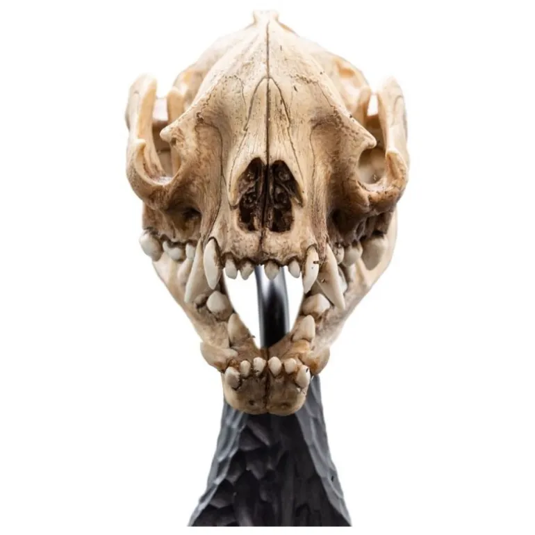 Realizada por Weta Workshop, reconocida por su meticulosa atención al detalle, esta estatua es un complemento perfecto para cualquier fanático de la saga. Representa el cráneo de un Warg, una criatura mítica que infunde respeto y admiración. Su acabado realista y la textura del material aseguran una experiencia visual impactante, ideal para exhibir en tu estantería de colección.