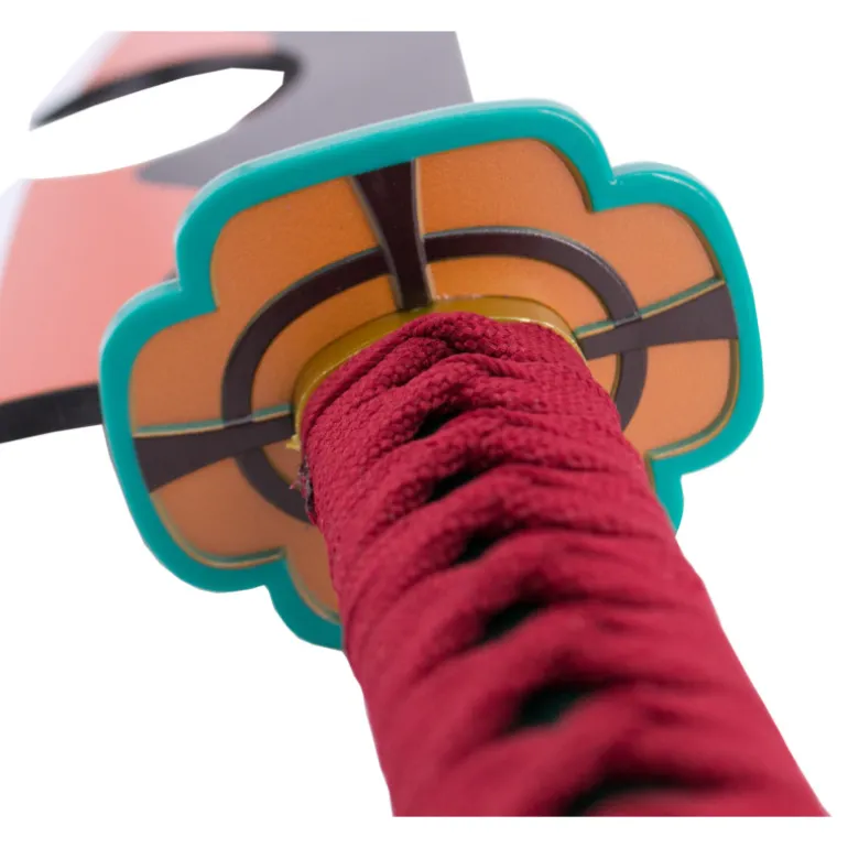 Es una réplica de la espada gemela que lleva Tengen Uzui durante los episodios de Kimetsu no Yaiba que miden un total de 88 cm con mango encordado en color granate y hoja negra con corte acabado en llamas amarillas y naranjas y con funda de polipiel negra. La hoja tiene una longitud de 58 cm y el bambú un grosor de 7 mm. Simplemente brutal!