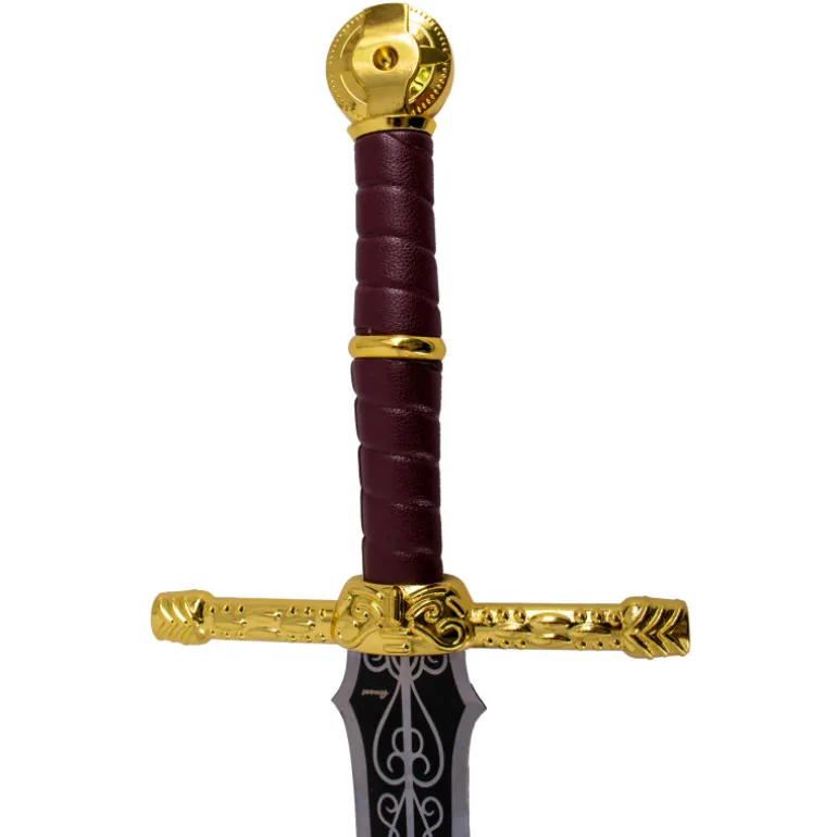 Acompañada de una vaina de polipiel marrón, esta espada no solo se presenta como un elemento decorativo, sino también como una pieza que puede ser exhibida de manera elegante. La vaina protege la hoja y, al mismo tiempo, complementa el diseño general de la espada, asegurando que su presentación sea impecable en cualquier entorno.