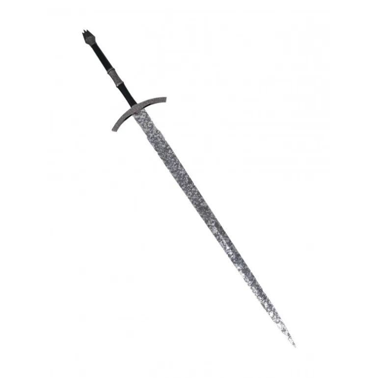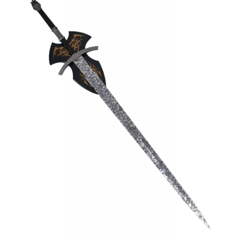 La Espada Rey Brujo del Señor de los Anillos es una réplica impresionante, perfecta para coleccionistas y fans de la saga. Esta espada mide un total de 137 cm, con una hoja de 100 cm de largo y un grosor de 4,9 mm, elaborada en acero con un acabado de desgaste que le otorga un aspecto auténtico y rústico.