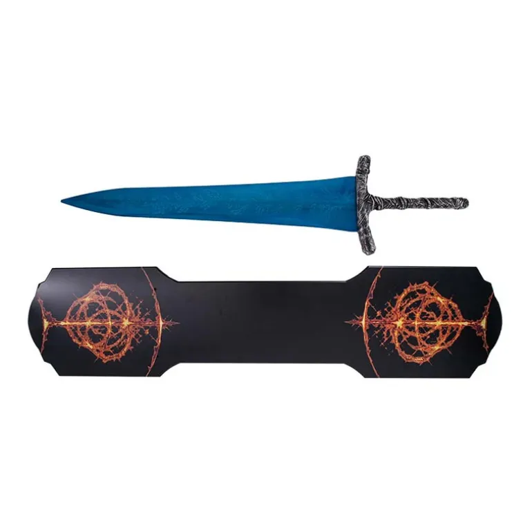 Además, este espadón incluye un soporte de madera para colgar en la pared, con unas dimensiones de 130×30 cm, que permite exhibir esta magnífica pieza de colección de manera destacada en cualquier habitación. Ideal para verdaderos entusiastas del videojuego, el Espadón de la Luna Negra es perfecto tanto para decoración como para añadir un toque épico a tu colección de artículos relacionados con Elden Ring.