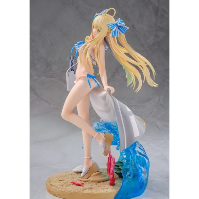 Descubre la impresionante estatua de Centaur Beachside Undine de la popular serie Azur Lane. Esta figura coleccionable a escala 1/6 mide aproximadamente 27 cm y ha sido fabricada con esmero en PVC de alta calidad por el renombrado fabricante Daiki Kougyo. El diseño captura a Centaur en una pose elegante en un entorno de playa, con detalles meticulosos como su traje de baño blanco adornado con lazos azules, y cabellos rubios ondeando al viento. La base representa una escena marina con corales y olas que complementan su aspecto acuático.
