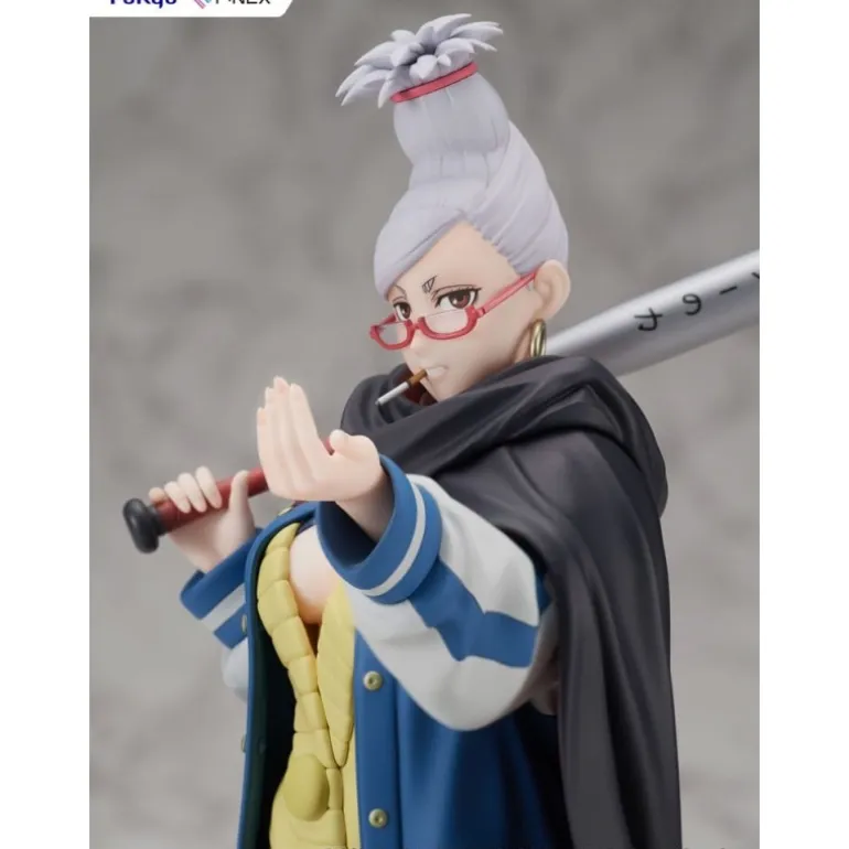 Sumérgete en el universo del manga con la Estatua Dandadan F:Nex. Esta impresionante figura de 26 cm está esculpida en PVC de alta calidad y representa fielmente a uno de los personajes más intrigantes de Dandadan. A escala 1/7, captura cada detalle con precisión. Vestida con una llamativa chaqueta azul con detalles blancos y un vestido amarillo, la figura porta un bate a la espalda y luce unas gafas rojas que realzan su mirada desafiante.