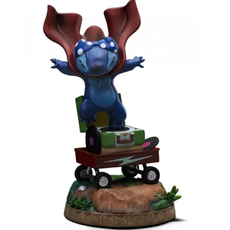 La estatua está perfectamente detallada, desde las texturas de la ropa hasta los expresivos ojos de Stitch, ofreciendo una representación fiel y dinámica. Esta figura se convierte en un regalo ideal para fanáticos del universo de Disney y coleccionistas de artículos de Lilo & Stitch. Su tamaño y acabado aseguran que será una pieza central en cualquier colección.