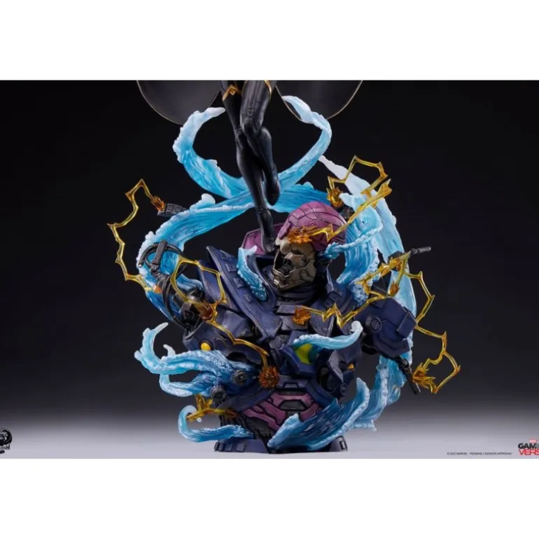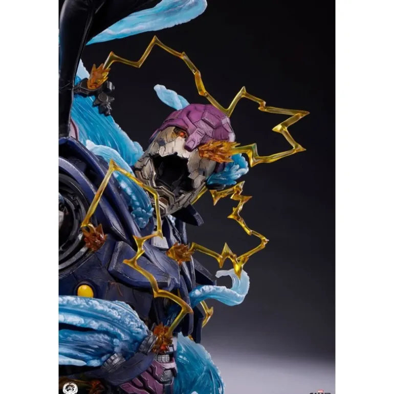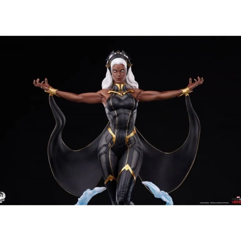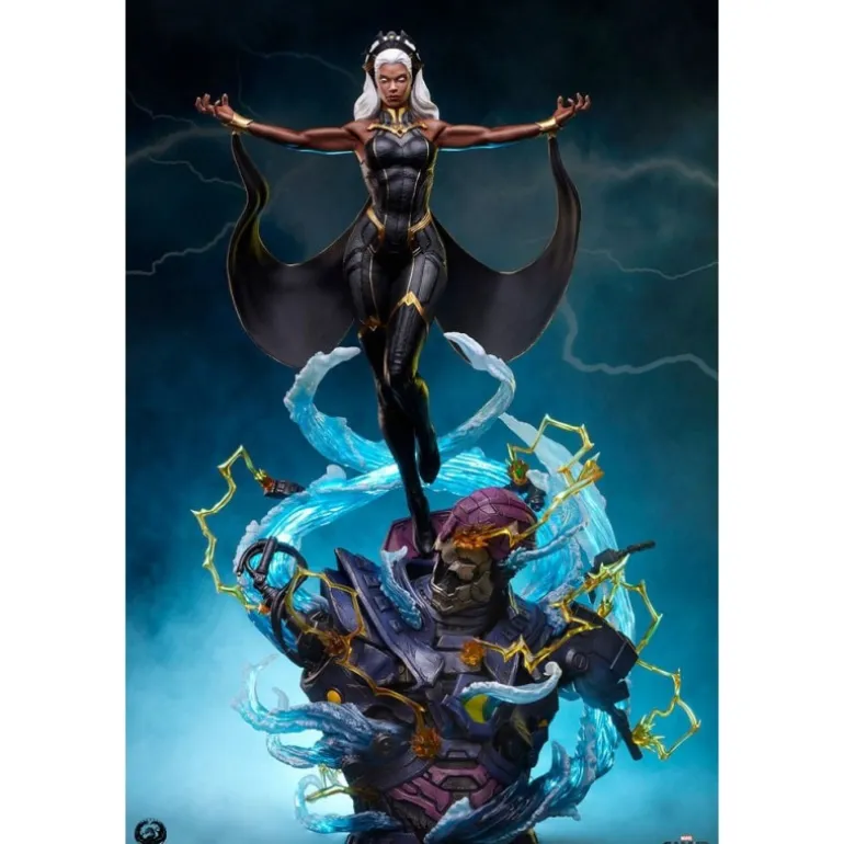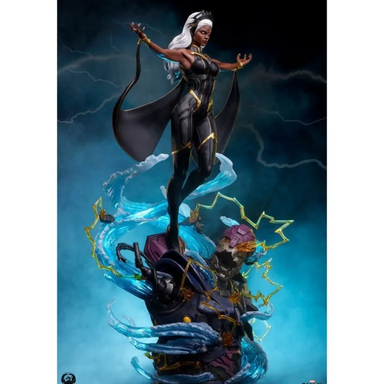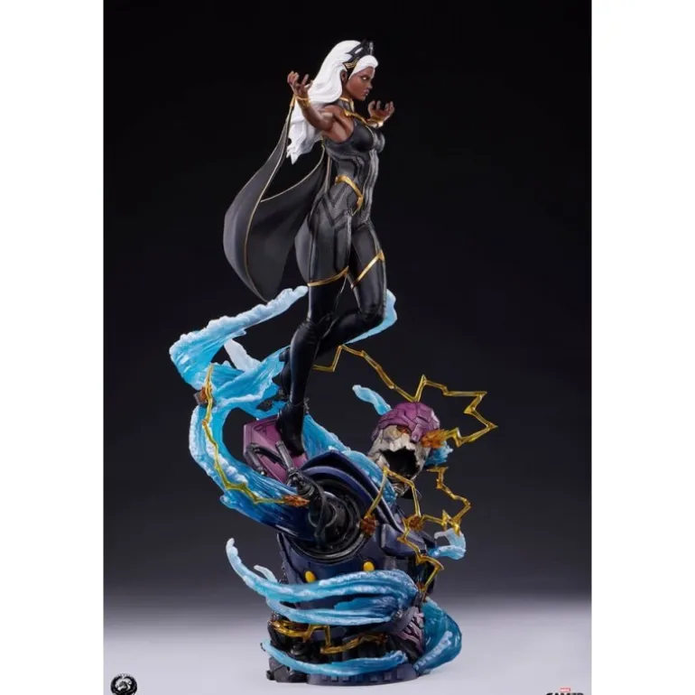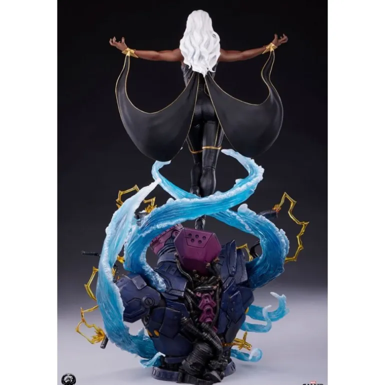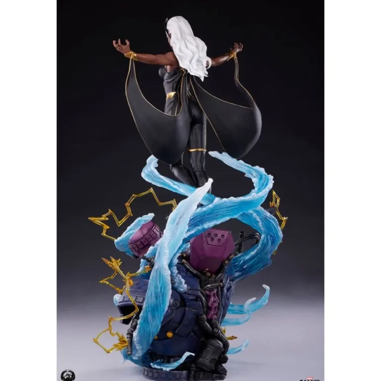 La estatua retrata a Storm en una pose poderosa y majestuosa, rodeada de efectos de viento y energía eléctrica, haciendo alarde de sus intensos poderes. Cada detalle está finalizado, pintado y numerado a mano, asegurando la exclusividad y el valor como artículo de colección.