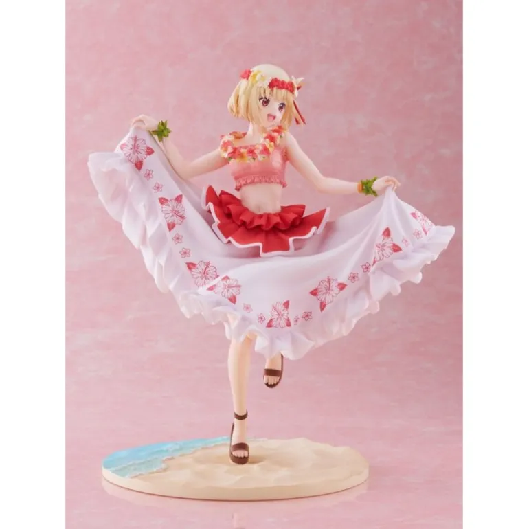 Sumérgete en el mundo del anime con esta exquisita estatua de PVC de Chisato Nishikigi en su versión Hawaii de la popular serie Lycoris Recoil. Con un diseño vibrante y detallado, esta figura captura a Chisato en un hermoso atuendo hawaiano, bailando sobre una base que simula la arena de la playa. Su falda blanca con estampado floral rojo y su top a juego realzan su encanto veraniego. Su expresión alegre y los detalles de su corona de flores hacen que esta figura sea verdaderamente especial.