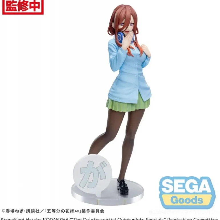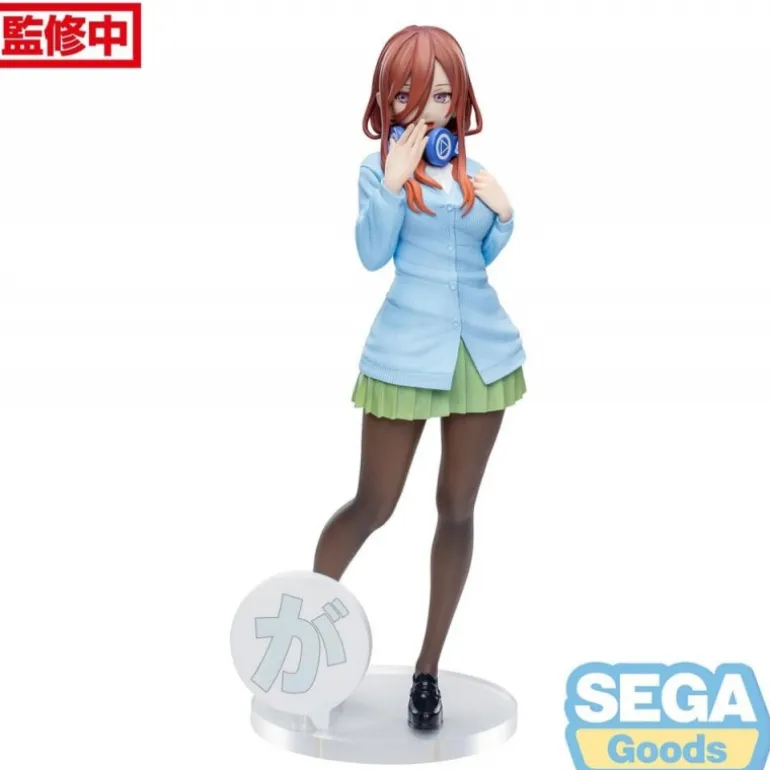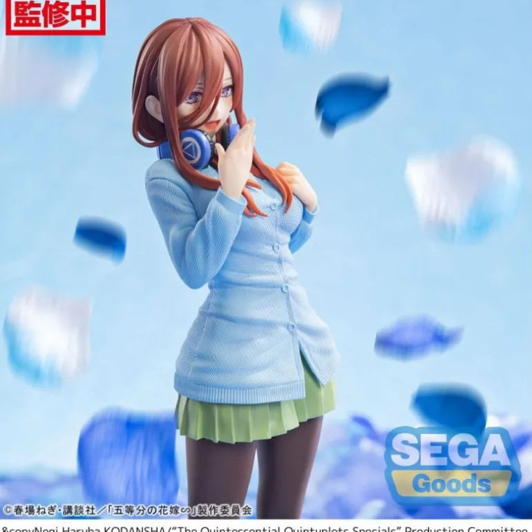 Descubre la Estatua Miku Nakano de The Quintessential Quintuplets, una pieza imprescindible para cualquier coleccionista. Esta figura, fabricada por Sega, muestra con detalle a Miku Nakano con su distintivo atuendo: un suéter azul celeste, falda verde y medias oscuras, complementados con unos auriculares azules. Fabricada en PVC de alta calidad, mide aproximadamente 20 cm de alto y viene con una base sólida para exhibirla con seguridad.