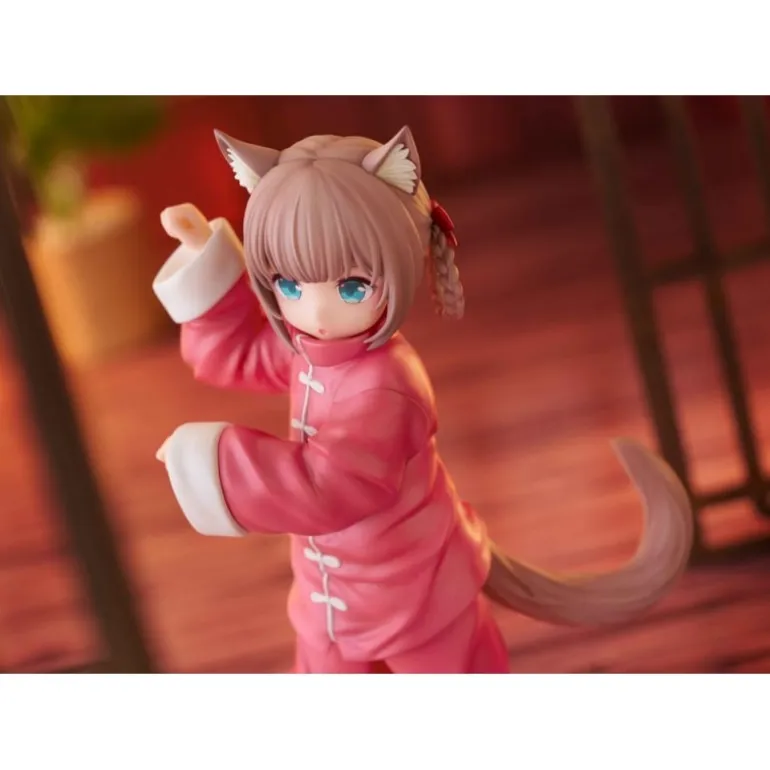 Descubre la encantadora estatua de Kinako Nyang de la serie My Cat Is a Kawaii Girl. Fabricada por Golden Head, esta figura de PVC mide aproximadamente 15 cm y viene con una base estable. Destaca por sus detallados rasgos que capturan la esencia del personaje: orejas de gato, cabello trenzado y un atuendo adorable en tonos rosados con detalles blancos, simulando la ropa tradicional china. Perfecta para los amantes del anime, esta figura no solo es un tributo a la estética kawaii, sino que también es una pieza de colección esencial. Viene en una elegante caja con ventana, ideal para exhibir o regalar.